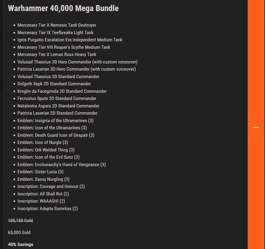 Событие мая в этом году - коллаборация со вселенной Warhammer 40,000. Добавили 4 новых танка, много разных эмблем, командиров и "дейлики", чтобы вы не забывали о новой распродаже. Такое часто происходит и ничего необычного нет. Чуть сильнее доминируют на поле боя, чуть ярче остальных, но ничего криминального.