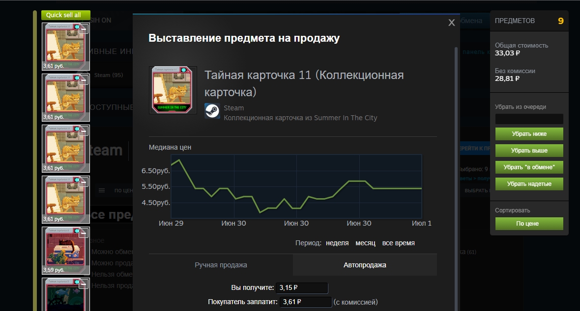 Обычная карточка распродажи стоит 2-3 рубля. За время распродажи можно получить 14 карточек на общую сумму в 2,5*14 = 35 рублей. Смешная сумма, подумают многие. Заморачиваться из-за такой мелочи никто не станет. Это пока не начинаешь думать шире.