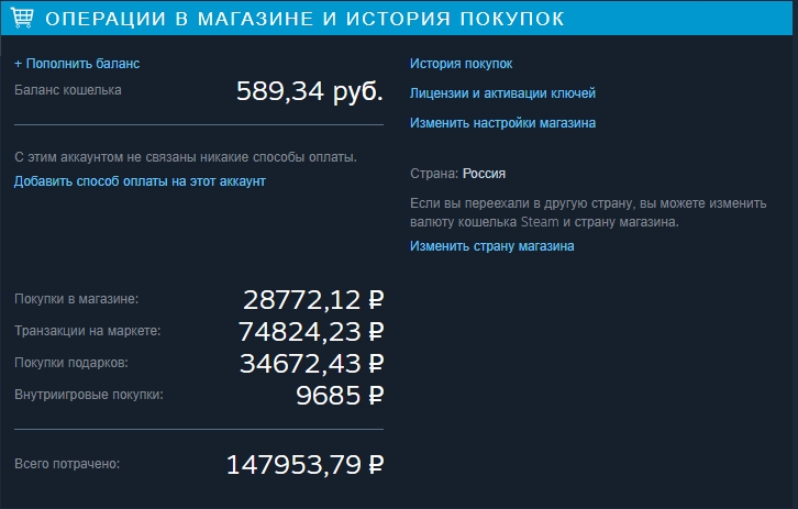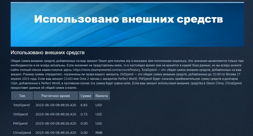 Вот сумма, которая была зачислена на аккаунт из внешних источников (карт пополнения, кошельков, карточек), все мои траты за 10 лет.