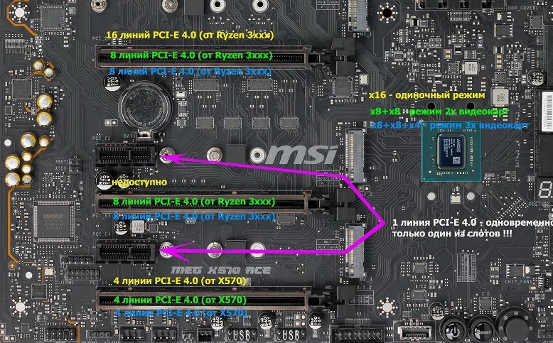 Но не падаем духом, просто ставим видеокарту в слот работающий от линий pci-e чипсета. Разумеется, на чипсетном слоте линий будет меньше, к примеру может быть всего четыре или даже две линии, и их версия скорее всего будет ниже чем в процессоре. Однако система будет работать нормально, хоть и с потерей производительности видеоадаптера.