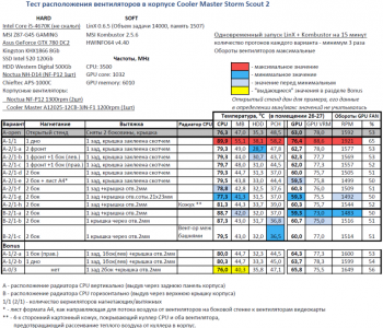 Тест расположения вентиляторов в корпусе Cooler Master Storm Scout 2