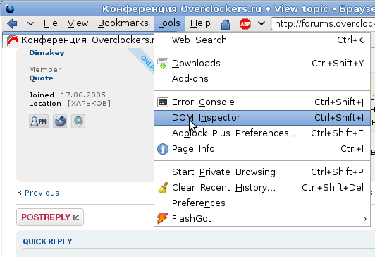 Теперь запускаем DOM Inspector: