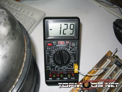 <br/>Мультиметр «взял» температуру в –129c, меньше он мерить не в состоянии.