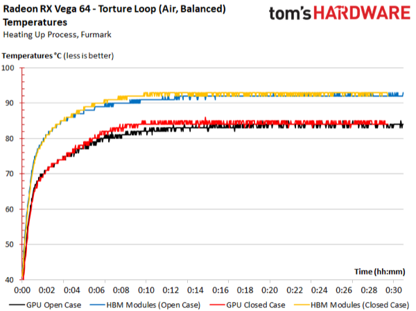 Почему? Во-первых, потому что эти видеокарты имеют на борту память HBM2, расположенную на одной подложке с графическим процессором. HBM2 - в принципе память горячая, еще и расположенная в миллиметре от мощного процессора, который уж сколько раз называли то "кипятильником", то "электрообогревателем". Мало того, чипы HBM2, как и сам GPU, по большей части удерживаются на месте органическим компаундом, так как прочность BGA-пайки кремния к подложке - невеликая в силу самой технологии осаждения "пятаков" на кремний. Смещение чипа с нарушением контакта в BGA и приводит к знаменитым отвалам чипов, а в Vega их три на одной подложке, так что вспоминаем теорию вероятности и получаем на порядок больший шанс неисправности на подложке, при которой видеокарта сгодится только как донор платы или деталей VRM. Во-вторых, Vega 64 и 56 были и остаются рабочими лошадками в майнерских фермах, в первую очередь из-за той же HBM2, и приличная их часть майнит уже лет 5. Ну и в третьих, 300 Вт энергопотребления для этой карты - не предел, как и 90 градусов на чипах памяти.