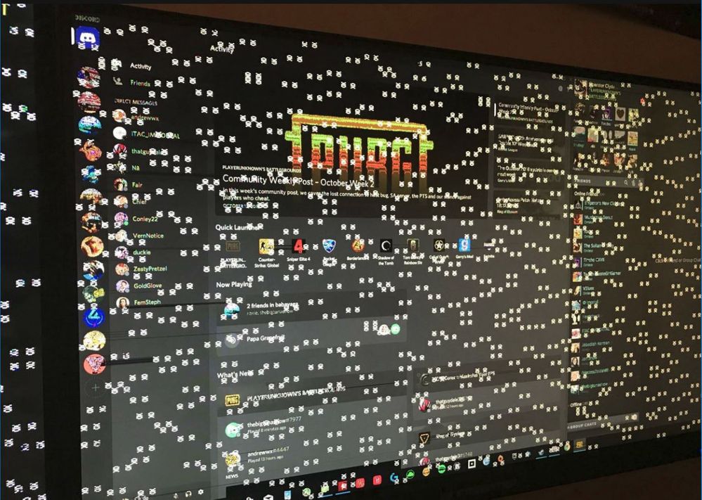 Третье место - карты RTX 2080/2080ti первых поколений. Третье потому, что уж слишком мало их выжило, и проблемными были в основном Founders Edition и прочие платы референсной разводки, у которых дорожки питания во внутренних слоях платы, расширяясь при нагреве, поднимали чипы памяти, приводя к тому, что назвали "Space Invaders Fault" из-за сходства артефактов со спрайтами в той самой древней игре. Шанс попасть на выживший реф минимален, но если оно еще не умерло, то обязательно это сделает, так что при возникновении острого желания купить б/ушную 2080/2080ti полезно будет нагуглить расшифровки серийных номеров различных вендоров и обходить стороной карты, выпущенные до декабря 2018 года. Причем от условий эксплуатации и бренда это никак не зависит, например фото ниже - с умершей картой в Alienware Aurora R8, недешевой брендовой сборке.