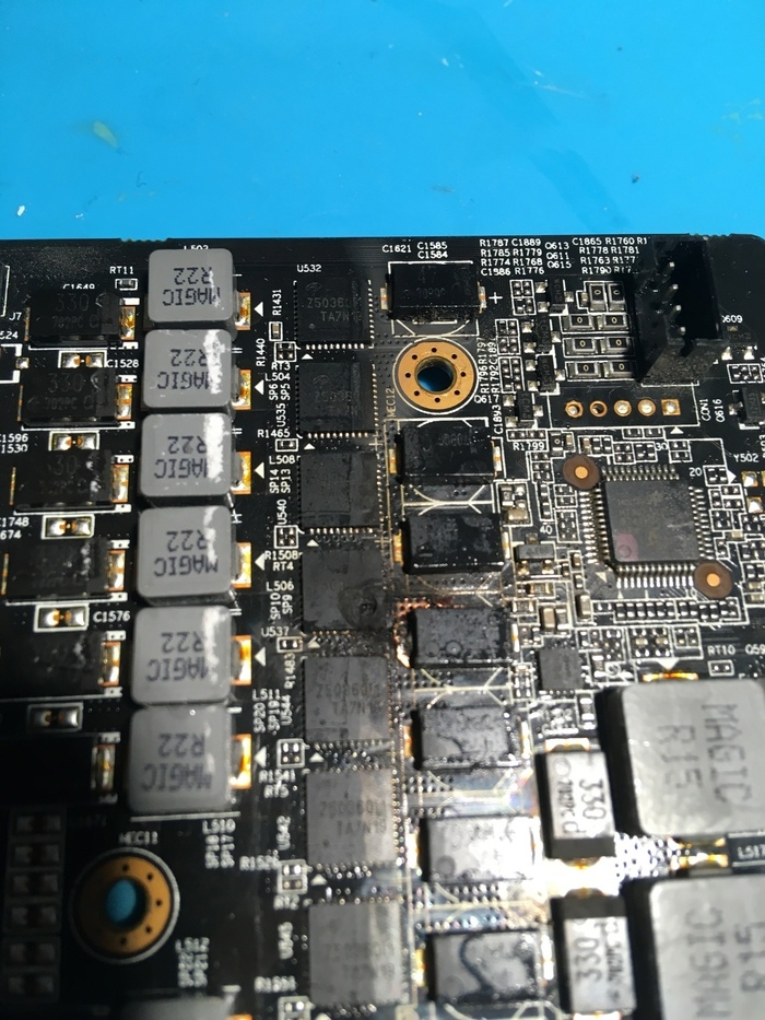 Второе место - также за AMD, в этот раз RX 5700 XT, которые хоть и обошлись без HBM, тем не менее с завидной регулярностью умеют показывать 90 градусов на хотспоте (самая горячая точка чипа) при средней по больнице в районе 75. Так же, как и Vega, RX 5700 и 5700XT массово закупались в фермы, и если проблемами с памятью они не страдают, то сравнительно небольшой 7-нм чип (всего на 10 мм2 больше, чем GP106 в 1060) в некоторых моделях (да что там, во всех кроме Nitro) страдает от малой тепловой инерции и сравнительно малой площади контакта с радиатором. И по крайней мере в настоящий момент с 99% вероятностью абсолютно все продаваемые 5700 XT будут проблемными в районе чипа, а то и по-быстрому погретыми термовоздушкой, чтобы хоть пару недель протянул, слишком уж эта карта удачна для майнинга.