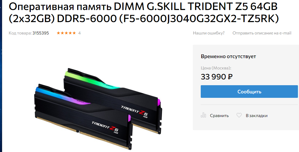 В качестве оперативной памяти можно выбрать модули G.Skill Trident Z5 2x32GB с частотой 6000Mhz и таймингами 30-40-40-96.