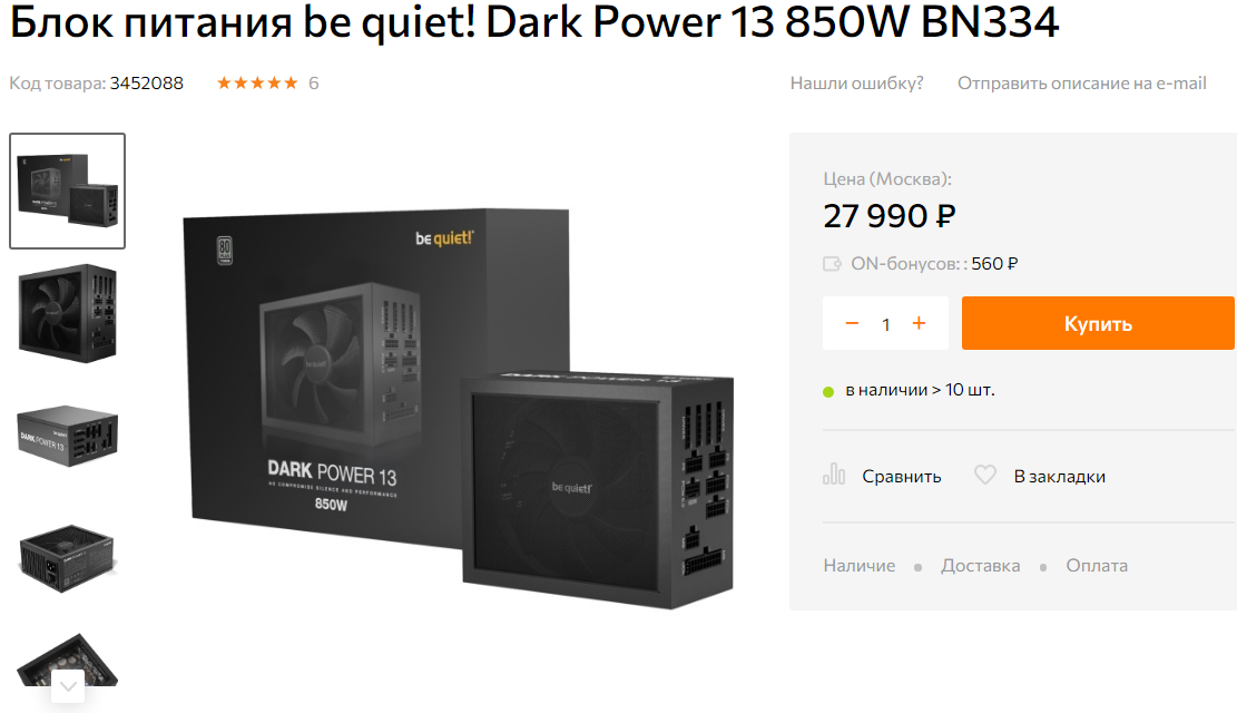 Be Quiet! Dark Power 13 850W предлагает сертификат 80+ Titanium и разъём 12VHPWR поэтому не придётся использовать переходник для видеокарты.