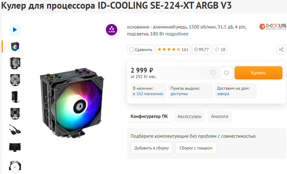 ID-COOLING SE-224-XT ARGB V3 для тех, кому нужна ARGB подсветка.
