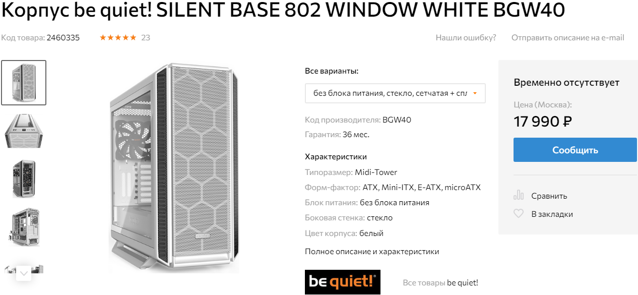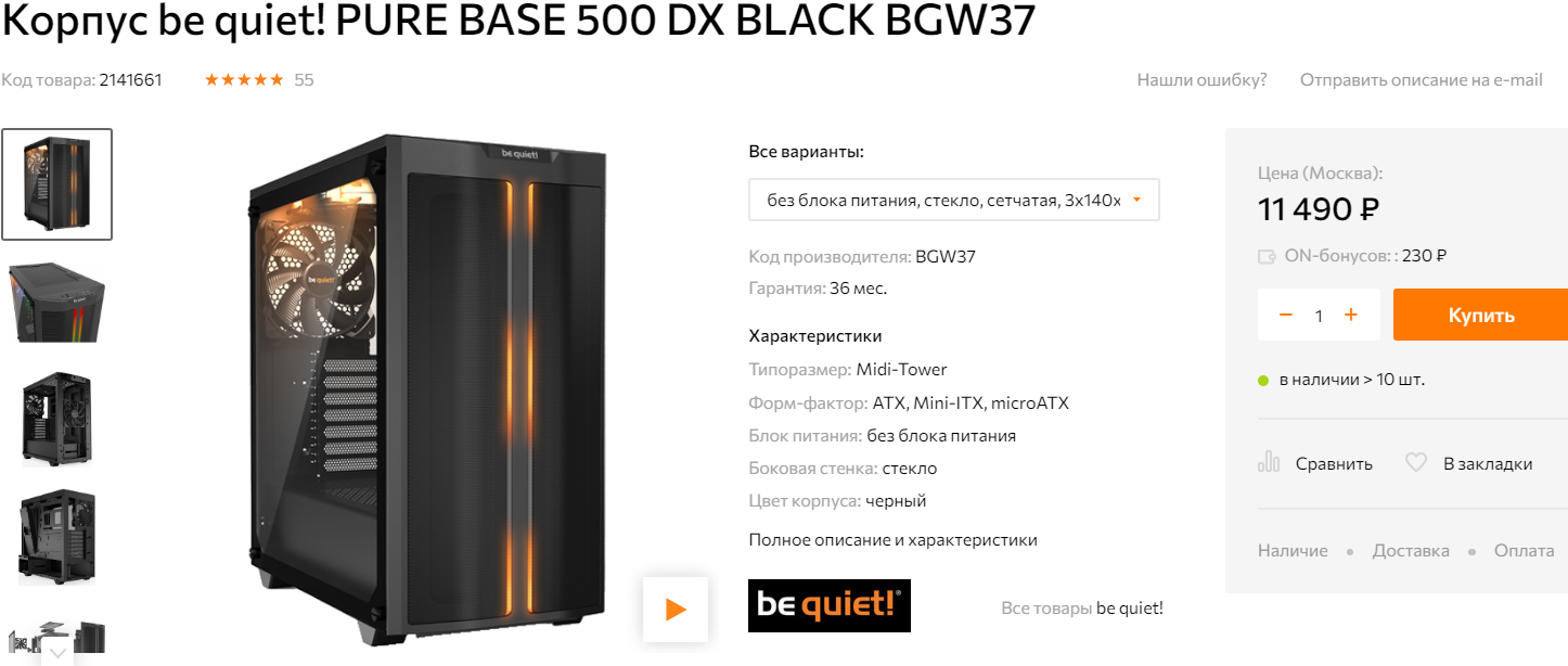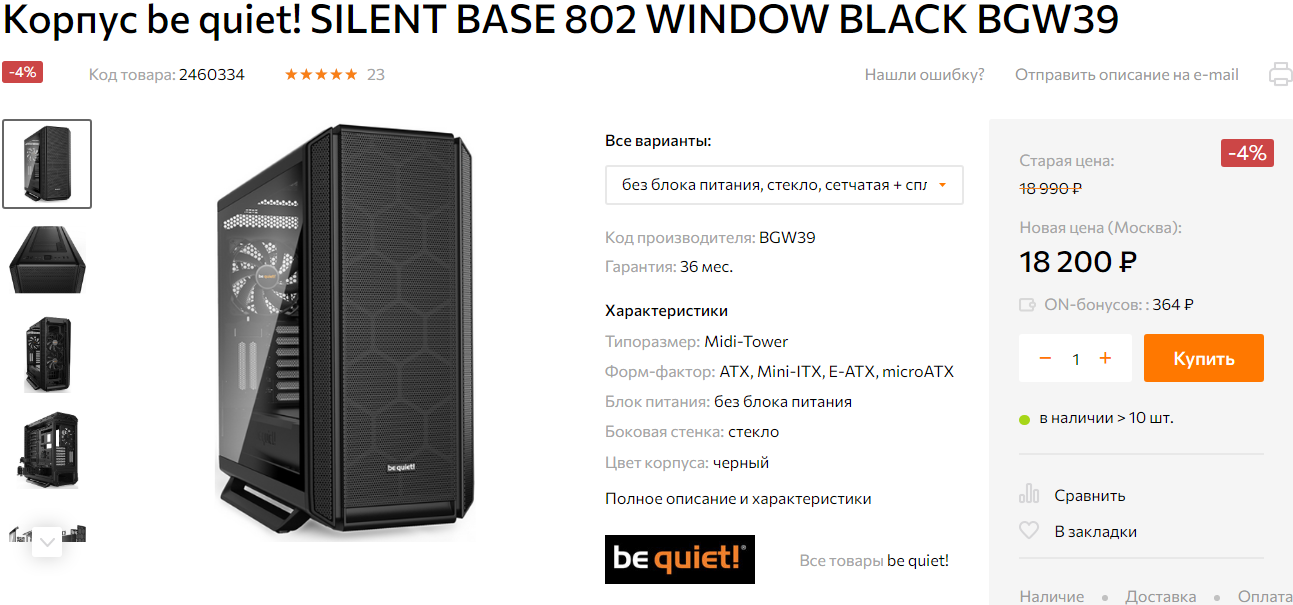 Это корпус из премиум-линейки Be quiet! Который поддерживающий радиаторы до 420мм (спереди), до 360мм (сверху) и до 140мм (сзади). Поддерживает материнские платы формата до E-ATX.