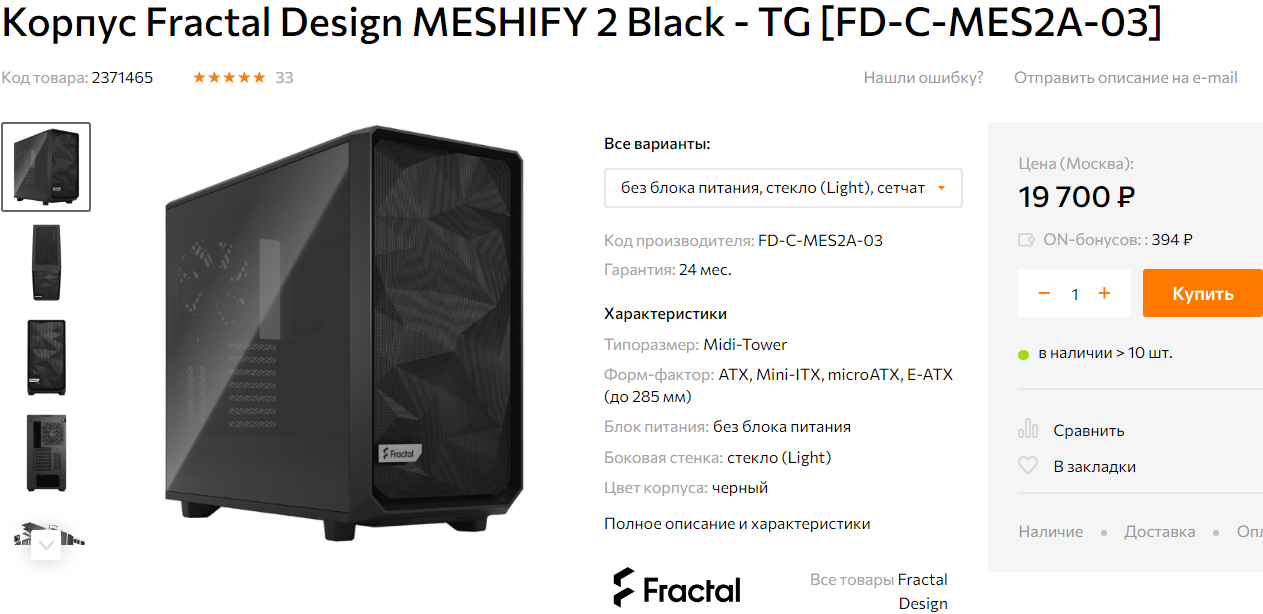 Это премиум-корпус от Fractal Design в который можно установить радиатор до 360мм (спереди), до 420мм (сверху), до 280мм (снизу) и до 120мм (сзади).