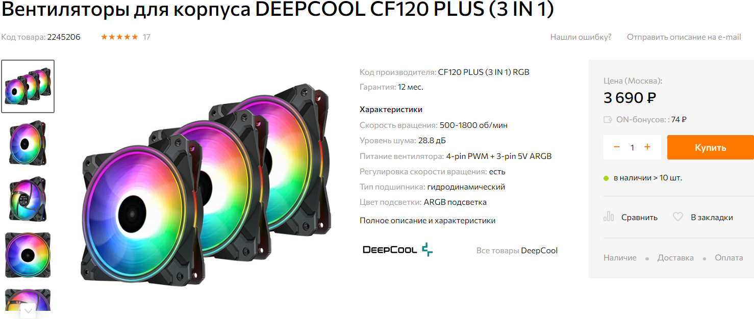 Это вентиляторы от DeepCool которые выделяются на фоне остальных интересной подсветкой. В комплекте (на 3 штуки также идёт контроллер.