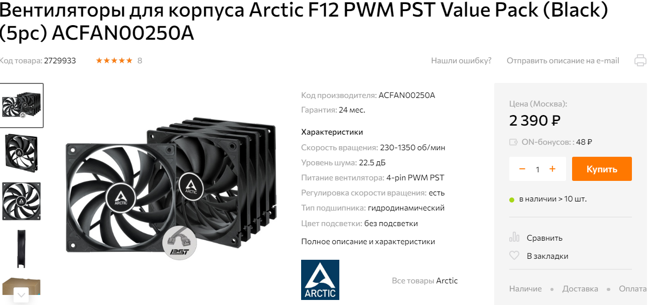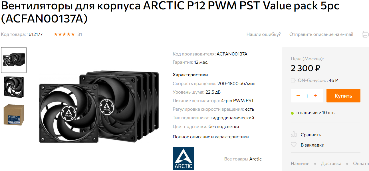 Это недорогие вентиляторы от компании ARCTIC. Модель P12 PWM PST предназначена для установки на вдув и на радиаторы. F12 же, предназначены для установки на выдув из корпуса.