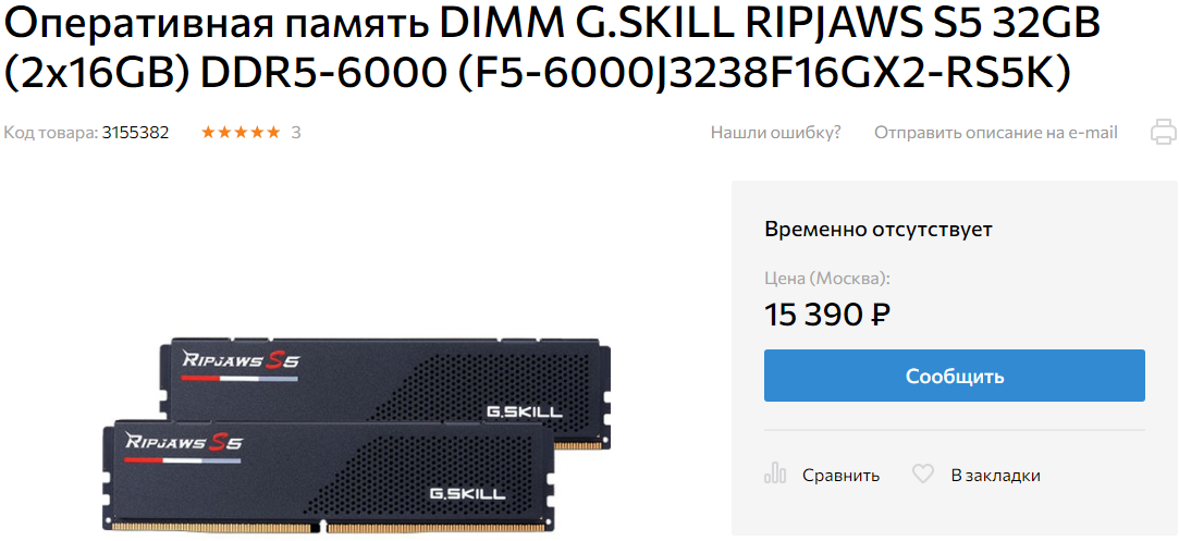 Или же память G.Skill Ripjaws S5 объёмом 2x16GB также с частотой 6000Mhz и таймингами 32-38-38-96.