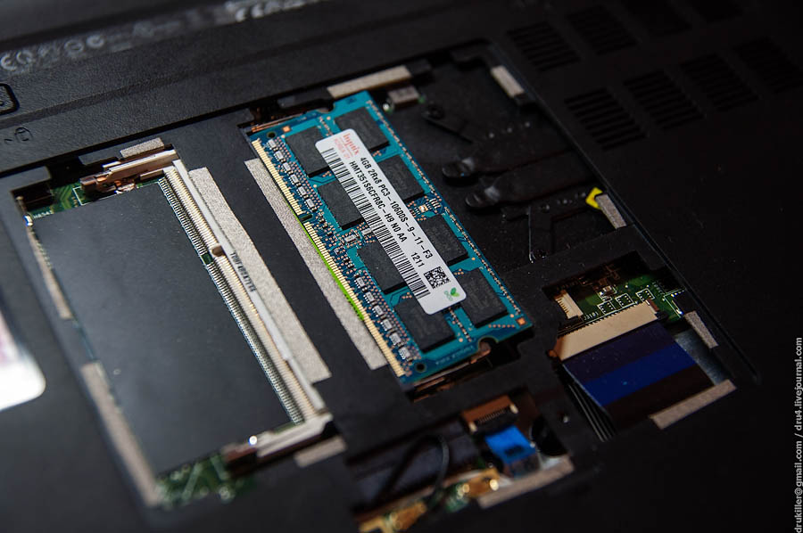 Всё, поехали ставить в ноутбук Asus U36SG. Для начала снимем всё что снимается: планка памяти, шлейфы.