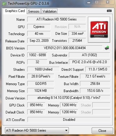 Утилита GPUz не видит ничего необычного, перед нами референсный ATI Radeon HD5870 с абсолютно стандартными частотами и 1600ми универсальными потоковыми процессорами, а если разницы нету, то зачем переплачивать за именитые бренды?
