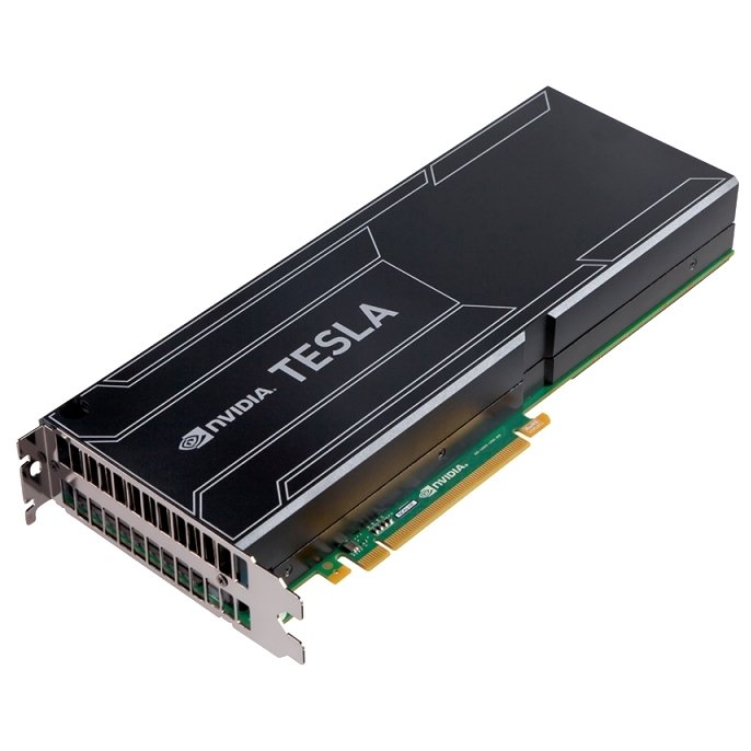 NVIDIA Tesla K80. Профессиональный ускоритель вычислений, который основывался на паре видеочипов GK210, каждый из которых имел в своем распоряжении 2496 CUDA ядер и 12 Гб видеопамяти стандарта GDDR5. Сами видеочипы по своим характеристиками находились где-то между настольной GTX 780 и самым первым GTX TITAN. Сложно сказать, почему было принято решение использовать видеочипы, у которых заблокировано по 384 CUDA ядра, ведь в случае более дешевого GTX TITAN Z компания не пожадничала и использовала чипы GK110 в их полной конфигурации.