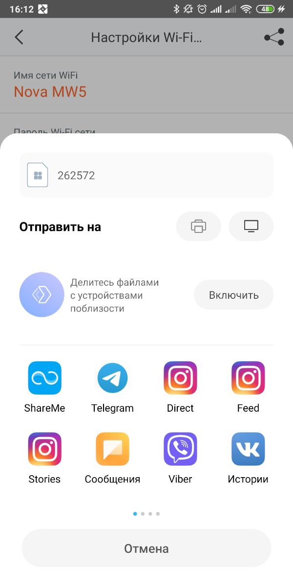 Настройки Wi-Fi позволяют не только сменить имя SSID и пароль, но и поделиться сетью с помощью мессенджеров или социалок (будет отправлено изображение с именем сети и паролем).