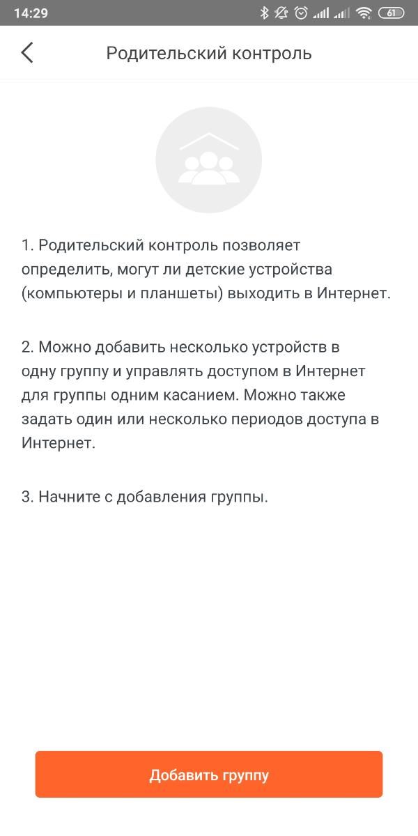 Родительский контроль позволяет добавить устройства в группу и управлять временем доступа в интернет. Настроек наподобие ограничения доступа к определенным сайтам, к сожалению, нет.