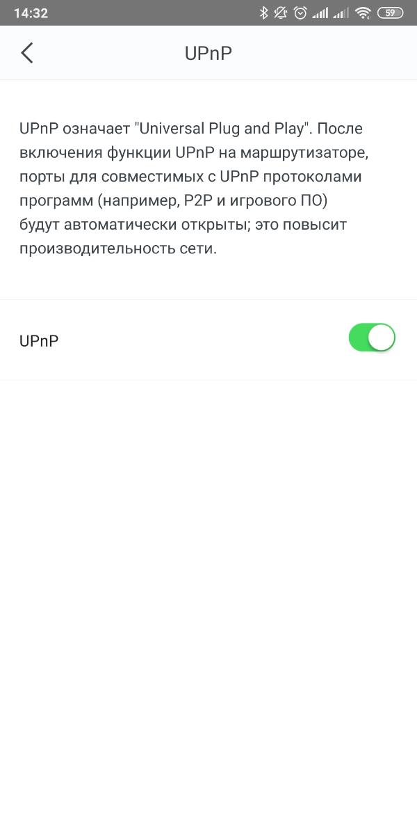 Функция UPnP включена по умолчанию, таковой ее и оставил.