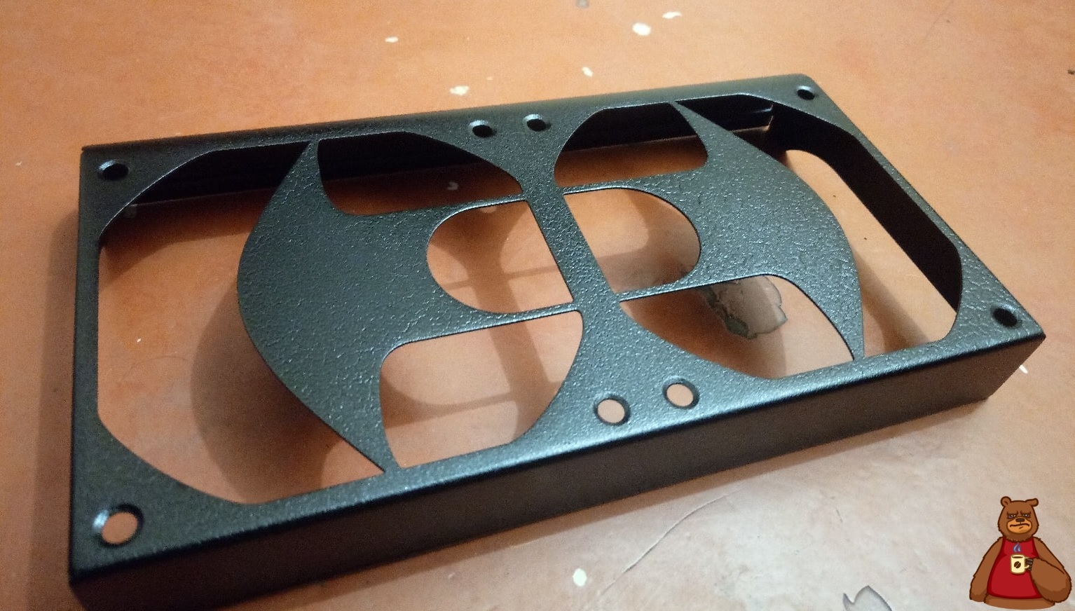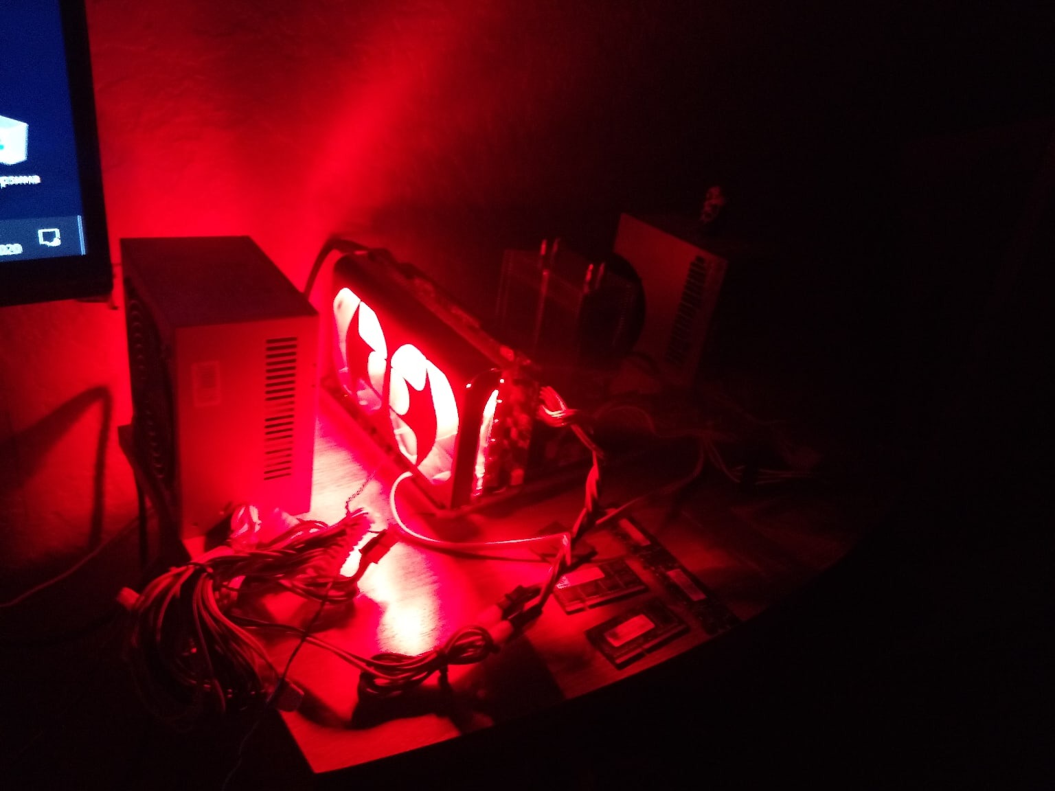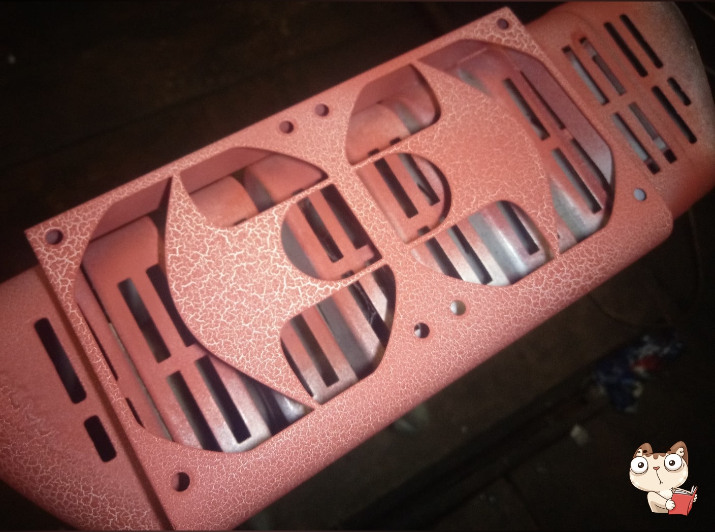 Теперь надо придать шарму данному тандему. Чтобы воробьи не залетали и мимо проходящих детей не засосало внутрь кулера. Нашёл старый побитый жизнью кожух от системы охлаждения видеокарт Xigmatek