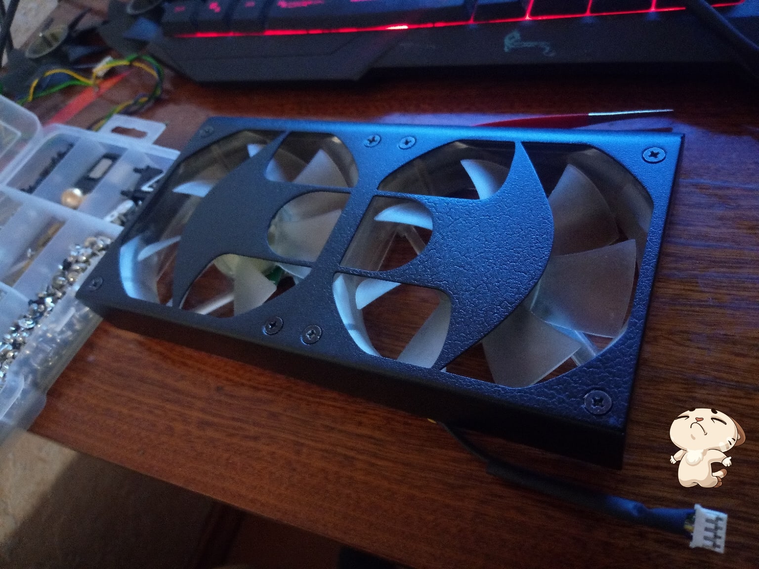 Установил на нее два тихоходных вентилятора Titan 92mm, но выглядело это ну так себе, хоть и охлаждало солидно.