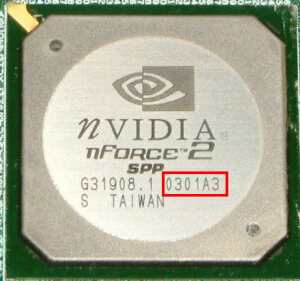Так вот. Сняв радиатор с чипсета я определил по маркировке, что мой чипсет именно на ревизии А2 . Как так?! Ведь это nForce 2 400 и должен он быть на ревизии С1. НЕТ.