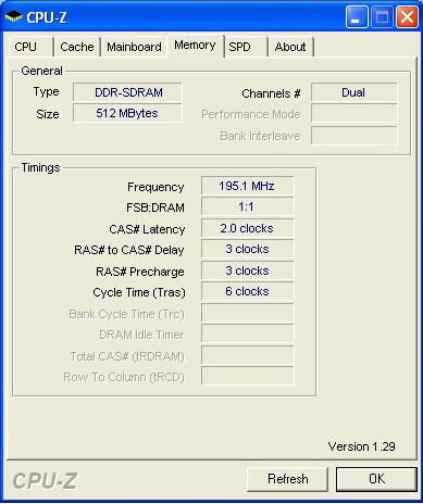Отдельно хочу остановиться на чипсете. По спецификациям, он nForce2 400 т.е. урезаный nForce 2 400 Ultra (урезанность заключается в том, что чипсет одноканальный). Однако каково было мое удивление, когда я вставил 2 модуль памяти и увидел в БИОСе при загрузке "DUAL DDR Channel ENABLED". Действительно, память работала в двухканальном режиме.