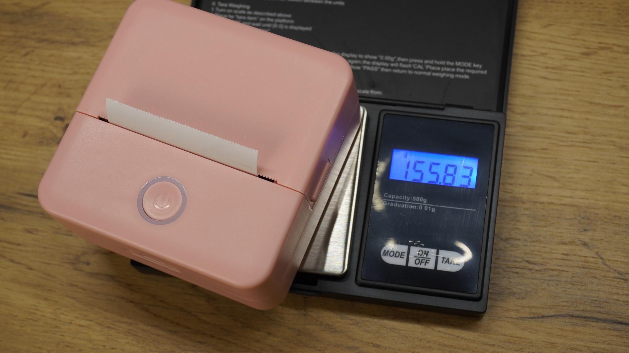 Принтер весит около 150 г, а бумага для печати имеет ширину 5,5 см. В целом сборка оставляет приятное впечатление, явных претензий нет.