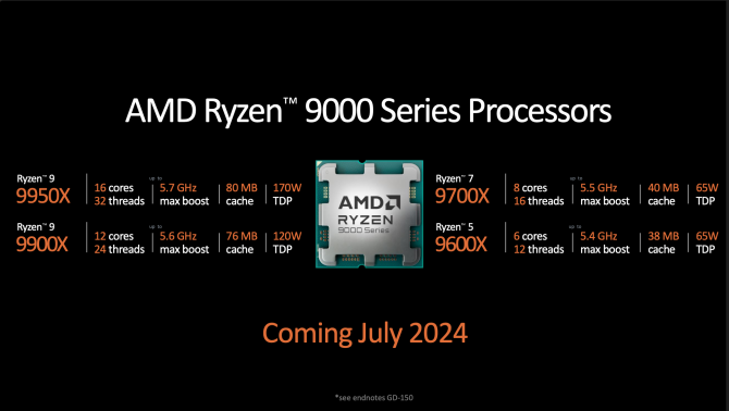 AMD объявляет о выпуске четырех новых процессоров для настольных компьютеров, которые войдут в серию Ryzen 9000. Основные характеристики этих процессоров таковы: