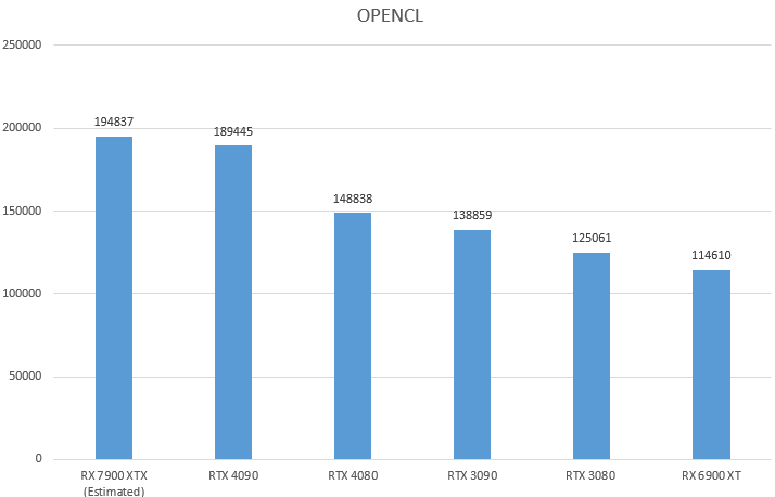 Тест OpenCL нам показал, что RTX 4080 удалось набрать 148 838 баллов, незначительно опередив RTX 3090. Интересно, что в этом тесте AMD 7900XTX быстрее даже чем RTX 4090. Что касается RTX 4080, то здесь заметно лишь 7%-ное улучшение производительности по сравнению с RTX 3080. Это немного разочаровывает, ведь фанаты ожидали лучших результатов.