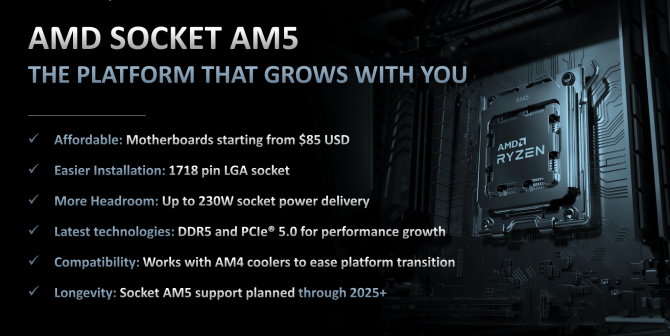 AMD заявляет, что поскольку сокет AM5 является новым, вы можете рассчитывать на его актуальность в течение нескольких лет, по крайней мере, до 2025 года. К его долговечности добавляется способность выдерживать мощность до 230 Вт и использование памяти DDR5, которая будет стандартом в течение многих лет. Это, конечно, не относится к Intel Raptor Lake, который, вероятно, является последним процессором для сокета LGA 1700. Тем не менее, Meteor Lake представит новый сокет, и, как сообщается, он предназначен для мобильных устройств, так что это будет область, где две компании столкнутся в ближайшее время.