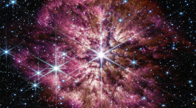 Звезды Вольфа-Райе представляют большой интерес для астрономов, которые считают, что они могут быть ключом к пониманию того, почему во Вселенной так много пыли. Эти звезды живут недолго, но проводят свою короткую жизнь, извергая туманность из пыли и газа. Туманность вокруг WR 124 известна как M1–67, и "инфракрасные глаза Уэбба" (NIRCam и MIRI) выявили невиданные ранее детали облаков.