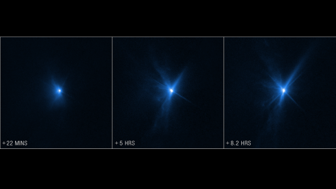 В октябре 2022 года "Уэбб" обратил внимание на интересную цель. Именно тогда НАСА провело испытание DART (испытание на двойное перенаправление астероидов), в ходе которого космический аппарат врезался в меньший из двух самоорбитальных астероидов. "Уэбб" запечатлел момент удара, как и телескоп Хаббл. Изображения "Уэбба" показывают плотную светящуюся точку с расширяющимся наружу выбросом. Данные наблюдения предоставили больше данных, чем "Хаббл".