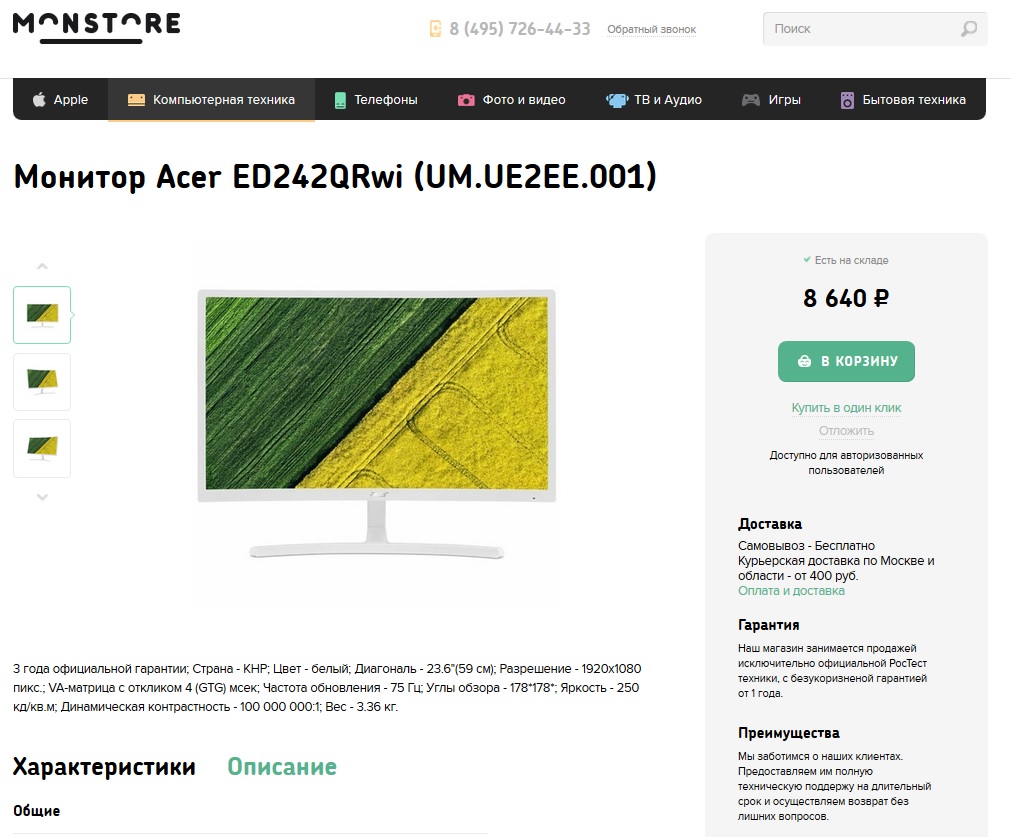 Монитор - тут опасность, всегда хочется взять нечто мощное и дорогое, от которого выхлопа будет не видно в бюджетной конфигурации. Поэтому, берем проверенный белый моник 75hz VA fullHD.