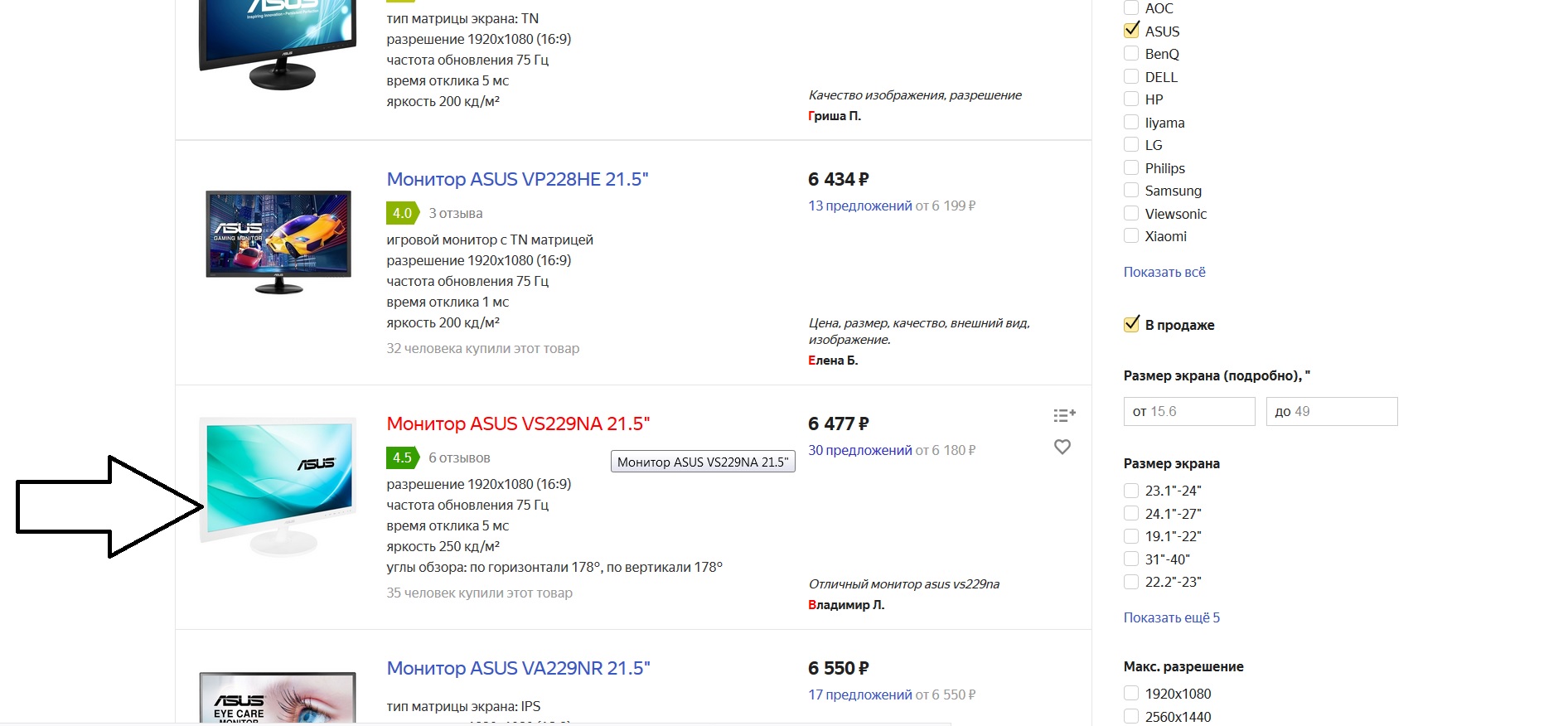 Придираемся дальше, раз уж пошли такие пляски. Я.М каким-то фантасмагорическим образом выбирает заглавные картинки для товаров, которые служат настоящей «заманухой» для покупателей. Я ищу белый монитор – и нахожу его в каталоге Я.М. Но, заходя в предложения магазинов, не вижу ни одного предложения в белом цвете, везде только черные. Я уже молчу про то, что давно пора было созреть до создания фильтра по цвету корпуса монитора. Но пока этого нет, такая дезинформация реально позорит сервис. Хотя, похоже, фирме без разницы.