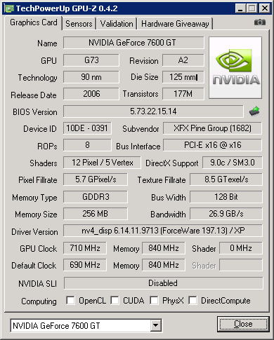 Видеокарта: XFX GeForce 7600GT 256mb DD3