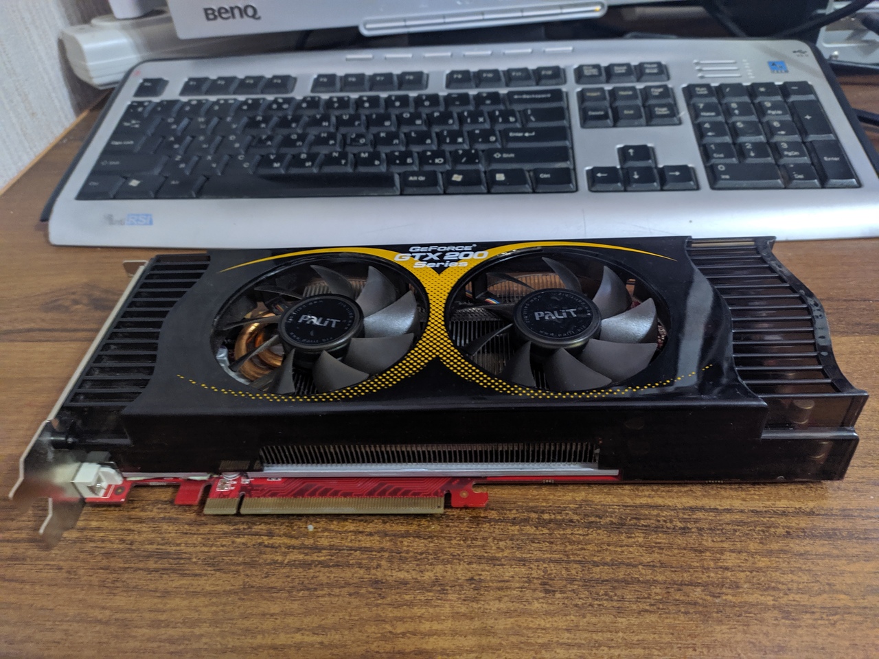Вот она! Моя первая серьезная видеокарта, купленная в далеком 2009 году под cборочку с I7 920, которая тащила вплоть до 2012 года и покупки 7970... Хотя i7 920 до сих пор тащит, а вот видеокарточка моя стала просто раритетом, которую можно использовать лишь как музейный экспонат, так как покупка ее в 2020 году абсолютно лишена какого-либо смысла. Для "затычки" она слишком прожорливая, а "игровой" ее назвать уж точно язык не повернется с ее-то 896 Мб GDDR3 памяти!