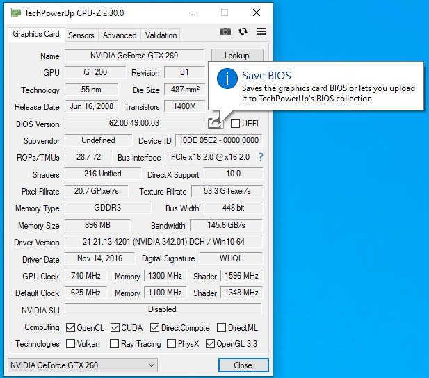 1) Сохранил файл биоса видеокарты при помощи GPU-Z (на рабочий стол);
