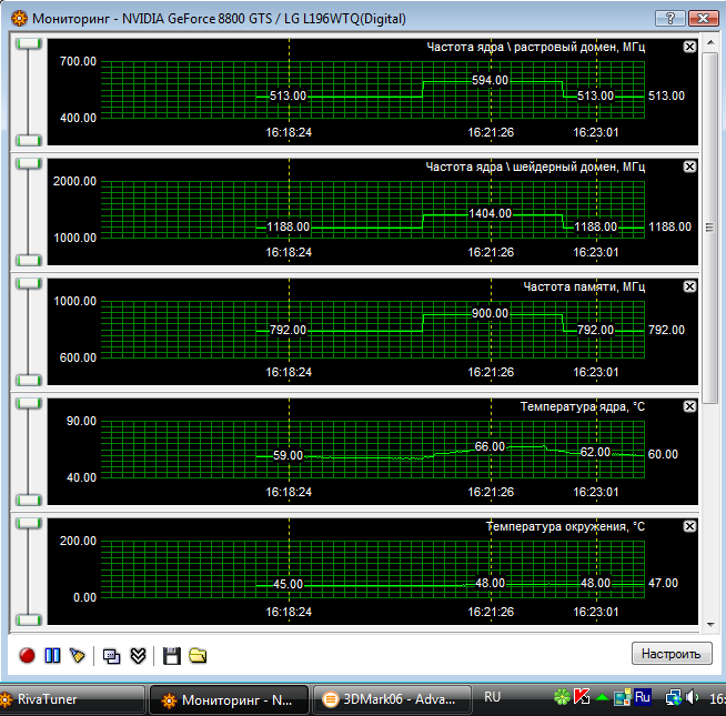 Мониторинг RivaTuner в режиме desktop/3DMark (2мин)/desktop
