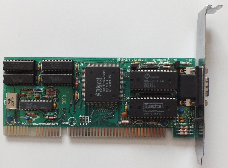 Видеокарта на чипе Trident TVGA9000B с 512 Кб видеопамяти оказалась в отличном рабочем состоянии.