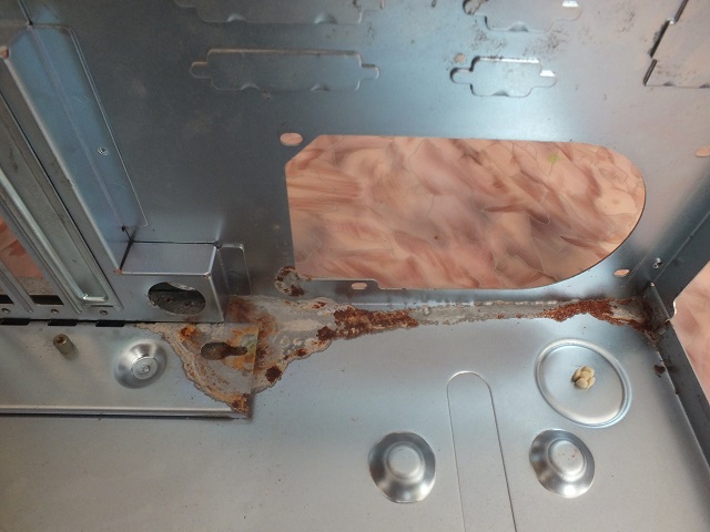 В моем случае, корпус в местах соприкосновения кислоты, вытекшей из батарейки, и металла покрылся ржавчиной.