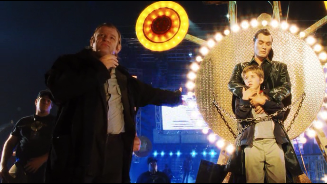 Иначе, ему грозит принудительное отключение (по факту - смерть). С этого момента, начинается "вольная жизнь" робота в теле мальчика. Компанию ему составляет робот-любовник (Джуд Лоу)