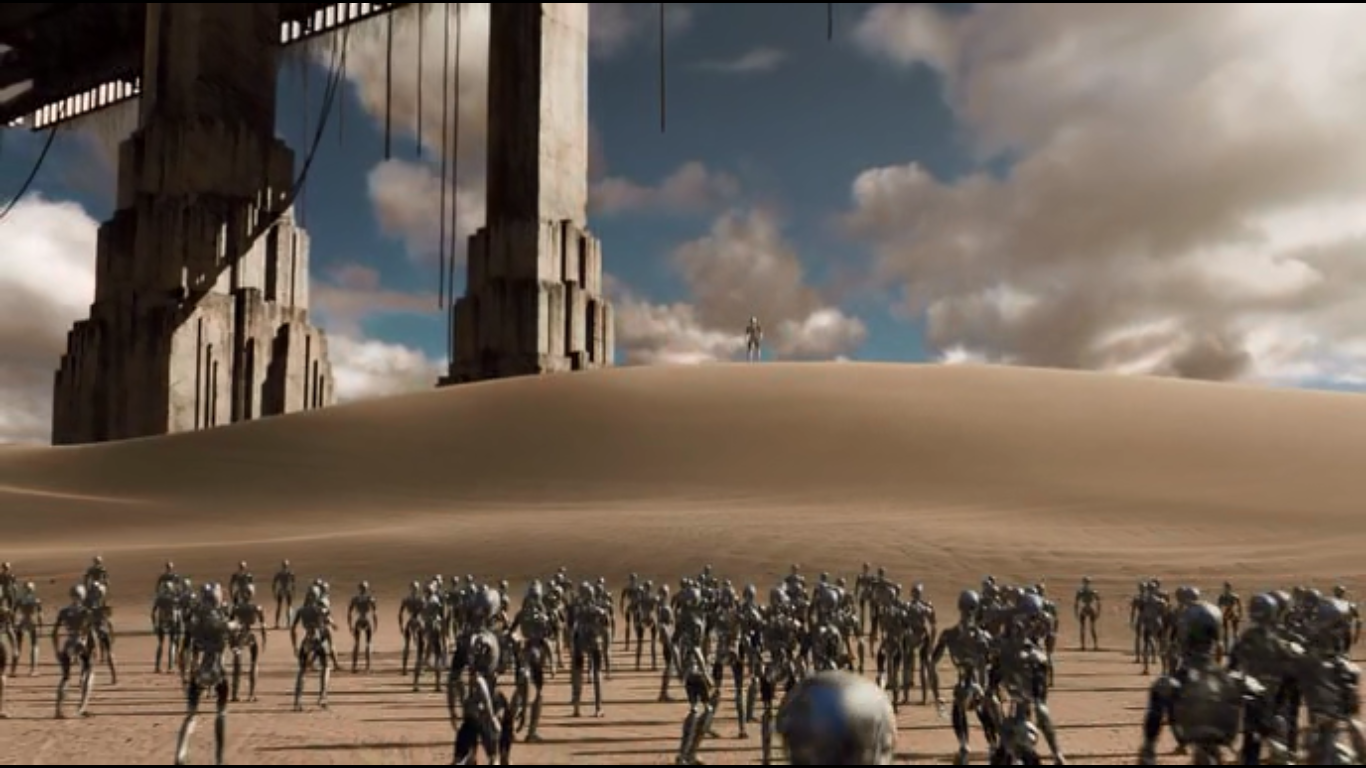 Но каким он будет, об этом фильм не говорит. Домысливайте сами, как будут развиваться взаимоотношения людей и свободных роботов. Что вернется спустя условные 50 лет из пустошей: враг человечества или его друг, неизвестно. Сценаристы и режиссер не стали уподоблять ИИ роботов человеческому. Финал покрыт тайной.