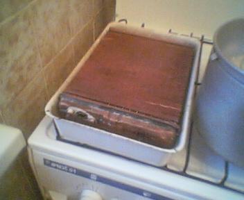 Честно скажу – по химии учился плохо, и просто не знал как будет реагировать медный радиатор на кипячение в растворе лимонной кислоты. На свой страх и риск решил попробовать… Нашел железную ёмкость на три литра по размеру, растворил 50гр порошка, влил в радиатор и вылил остальное. Решил, что для обработки хватит довести всё это дело до кипения, подержать так минуту-другую и потом хорошенечко промыть в мыльном растворе.