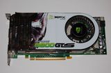 Видеокарта XFX GeForce 8800GTS 320MB. Лицевая, оборотная сторона, карта без кулера. Графический процессор G80, микросхема памяти.