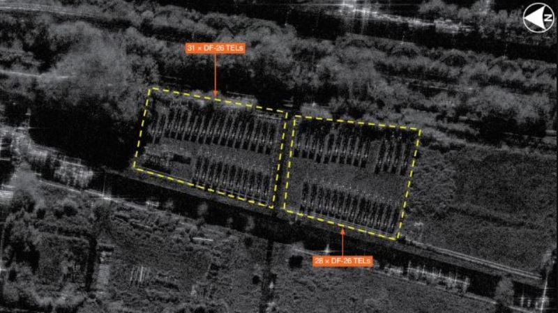 Спутниковые снимки, полученные 9 сентября 2024 года, привлекли внимание западных экспертов и военных аналитиков. Они показали значительное увеличение числа транспортно-установочных пусковых установок (ТПУ) для баллистических ракет средней дальности DF-26 на новом объекте в Пекине. Установки, выявленные радаром с синтезированной апертурой, указывают на наличие 59 новых ТПУ, что свидетельствует о масштабном наращивании ракетных сил Китая.