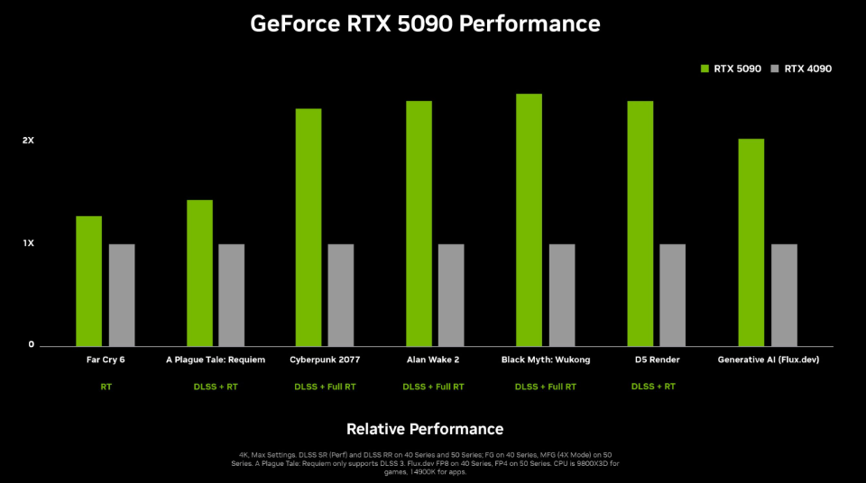 Производительность RTX 5090 подтверждается тестами в популярных играх. Например, в Cyberpunk 2077 и Alan Wake 2 видеокарта демонстрирует более чем двукратное увеличение производительности по сравнению с RTX 4090 при активированном DLSS 4. Даже в менее требовательных играх, таких как Far Cry 6, прирост производительности составляет 30-40%.