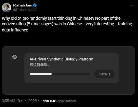Недавно OpenAI выпустила новую модель рассуждений под названием o1, и вскоре после этого пользователи начали замечать странное явление. При решении задач, например, «Сколько букв R в слове strawberry?», модель иногда переключалась на китайский язык в процессе мышления, даже если вопрос задавался на английском. Такой переход происходил на этапе рассуждений, а окончательный ответ все равно выдавался на английском.