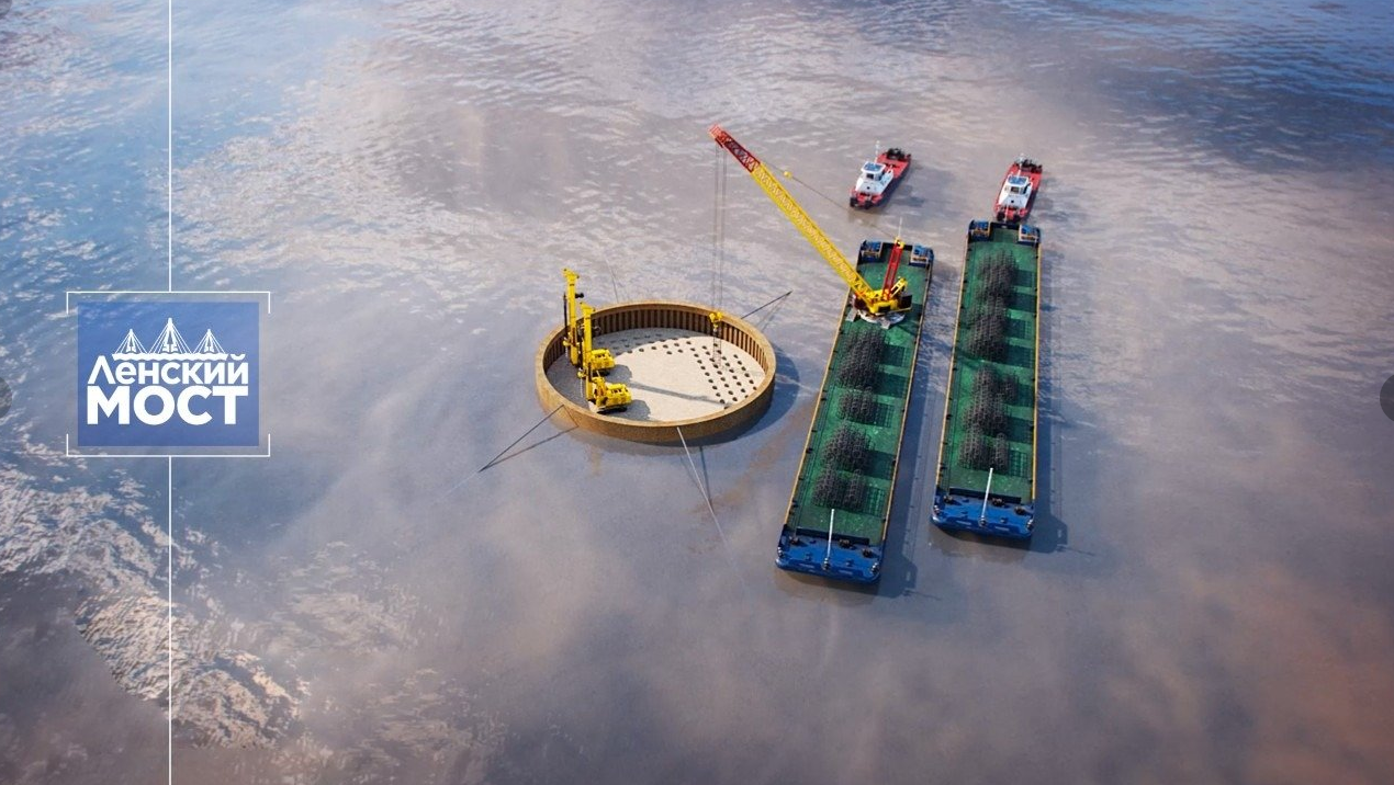 Основной пролет моста через Лену протянется почти на 2,5 километра. После завершения монтажа первого коффердама его спустят на воду, затем начнется установка второго.